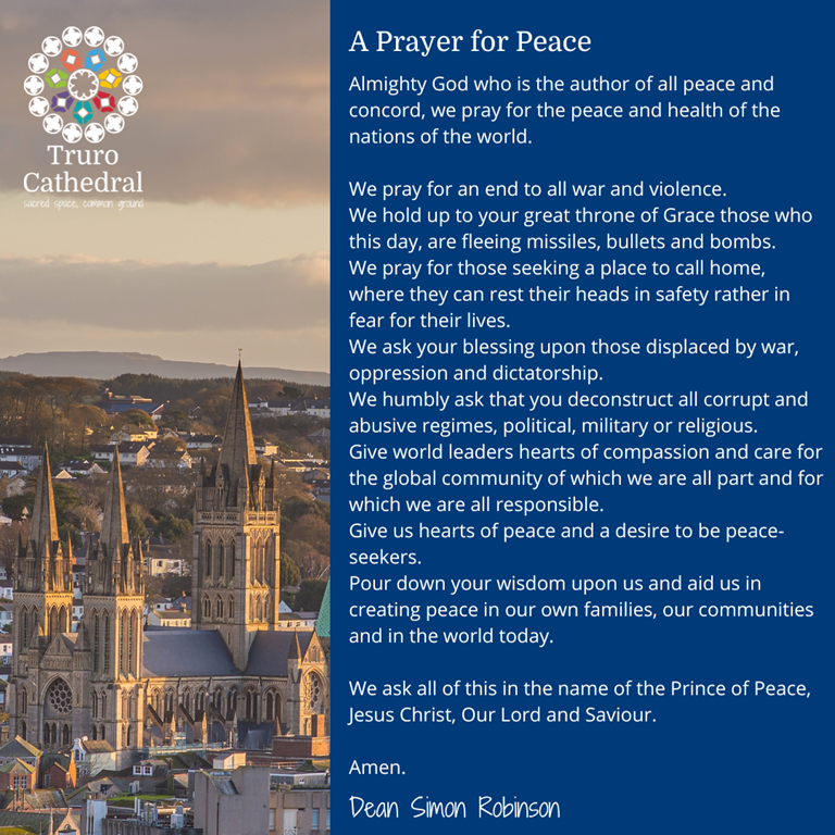 We pray daily for the peace and well-being of all nations in the many services that take place in Truro Cathedral.