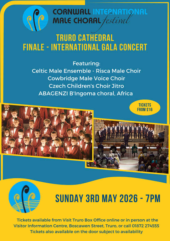 CIMCF 2026 returns on the 1st to 3rd of May 2026 with multiple events at Truro Cathedral. Free to attend lunchtime concerts are on the 1st and 3rd, with evening International Gala concerts on the same day. Saturday the 2nd sees choirs from all over the world competing in the competition classes for prize money, so come and hear some amazing choral singing from around the world.