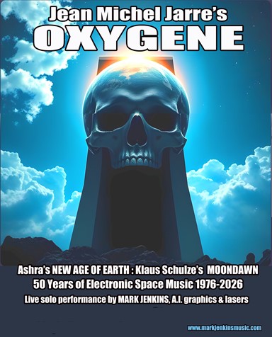 It's 50 years since Jean-Michel Jarre's 18 million selling ecologically aware album "Oxygene" changed the face of popular electronic and ambient music. Now music technology expert Mark Jenkins performs the album in its entirety accompanied by lights, lasers and artificial intelligence computer graphic projections. The evening opens with two other classics of electronic space music from 1976 - Ashra's beautiful and emotive "New Age Of Earth" and Klaus Schulze's powerful and evocative "Moondawn".