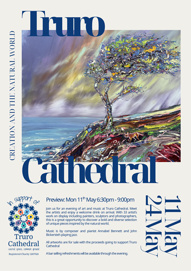 A preview evening of art and music at Truro Cathedral for the exhibition Cathedral of Creativity: Creation and the Natural World. Featuring 33 artists - painters, sculptors and photographers. A great opportunity to discover a bold and diverse selection of unqiue pieces inspired by the Natural World.