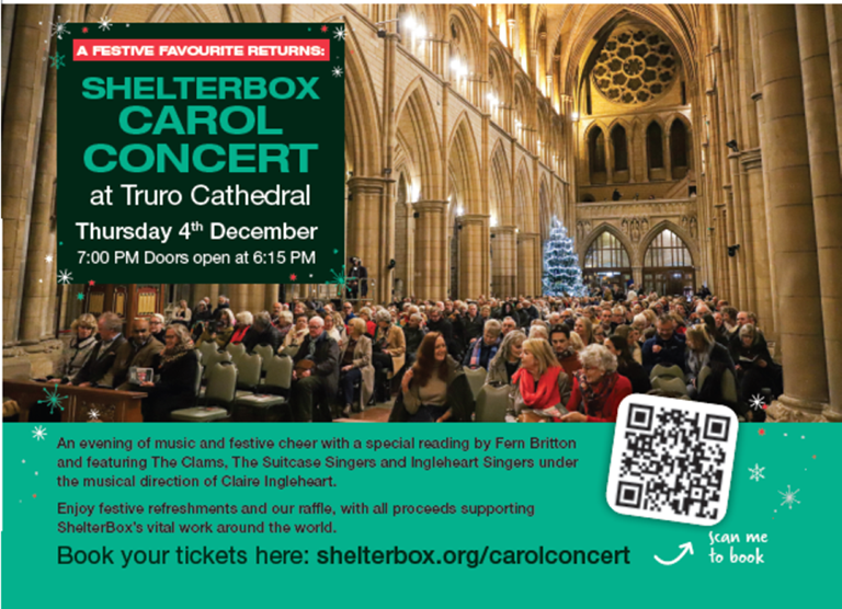 This year marks ShelterBox’s 25th anniversary, and by attending this concert and making a donation, you’ll be supporting a Truro-based international humanitarian organisation dedicated to providing emergency shelter and aid to those affected by disasters worldwide.