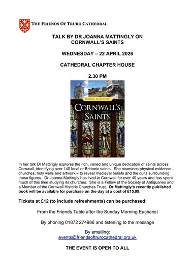 The Friends of Truro Cathedral: Talk by Dr Joanna Mattingly on Cornwall's Saints