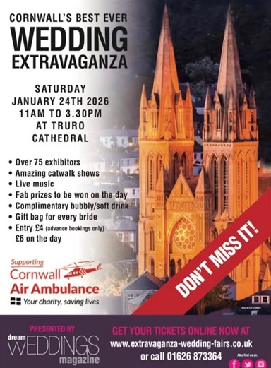 Extravaganza Wedding Fair's first autumn Cornwall Wedding Extravaganza in September 2025 attracted over 75 exhibitors and some 800 visitors – and they'll be back on Saturday 24 January with a host of the county’s top wedding suppliers.